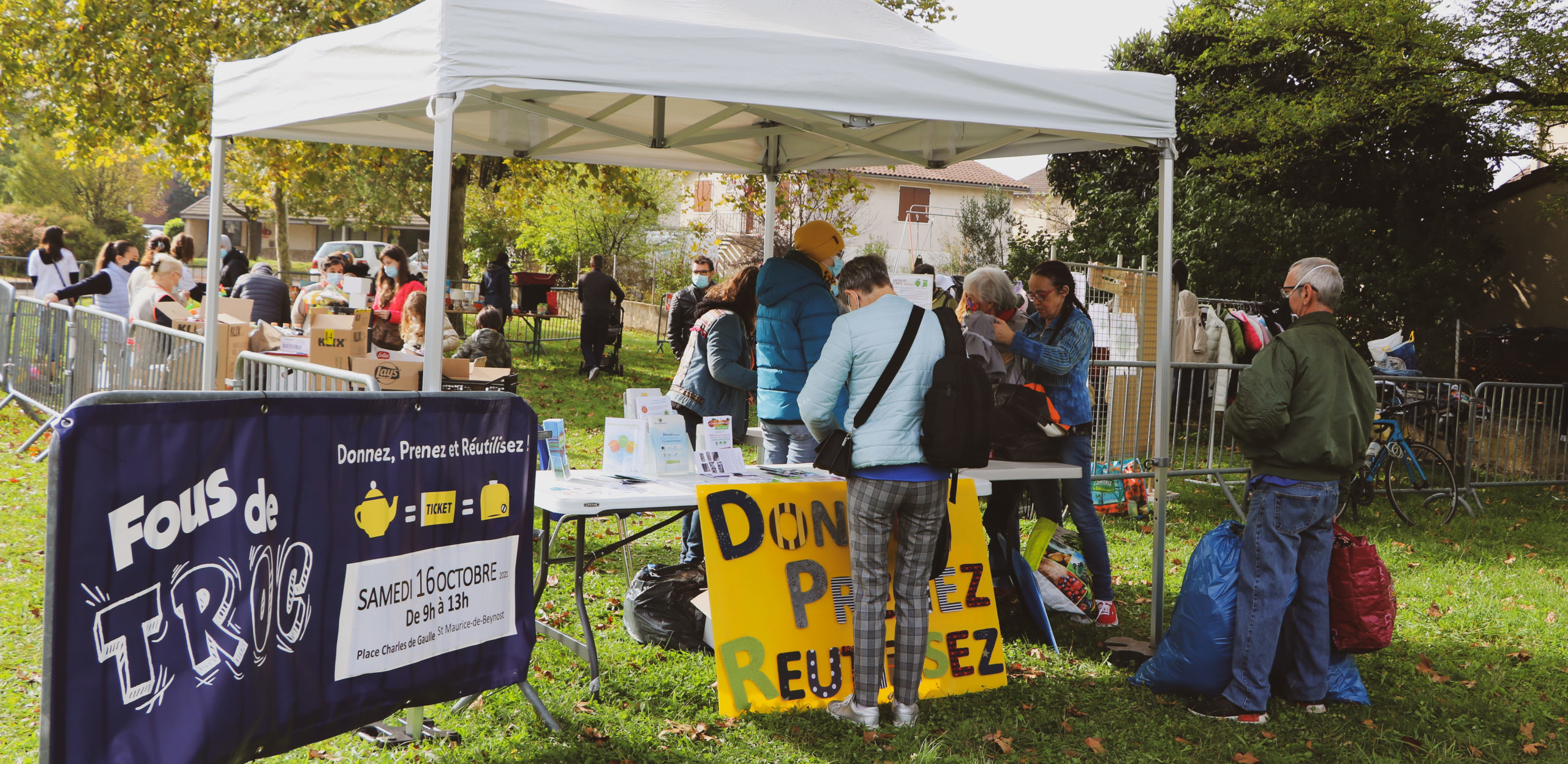 Le samedi 16 octobre 2021 la troisième édition de « Fous de troc » s’est déroulée sur la Place Général De Gaulle à St-Maurice-de-Beynost entre 9h et 13h. Sur place étaient présents les bénévoles du Repair Café (issu d’une collaboration entre le CeSAM et l’association Côtière en Transition), le centre social Artemis et la Croix Rouge.
