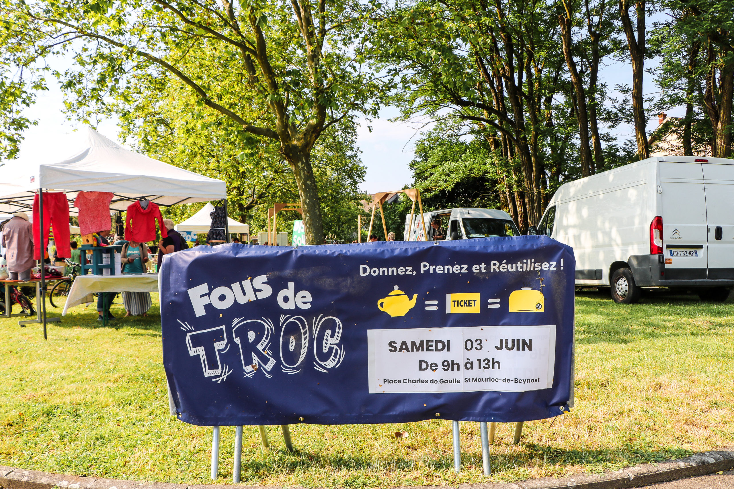 Samedi 3 juin 2023, la quatrième édition de « Fous de troc » s'est déroulée Place Général De Gaulle à Saint-Maurice-de-Beynost de 9h et 13h30. Une initiative de la Communauté de Communes de Miribel et du Plateau, des centres sociaux Artémis et CESAM. L'objectif de l'événement ? Diminuer les déchets !