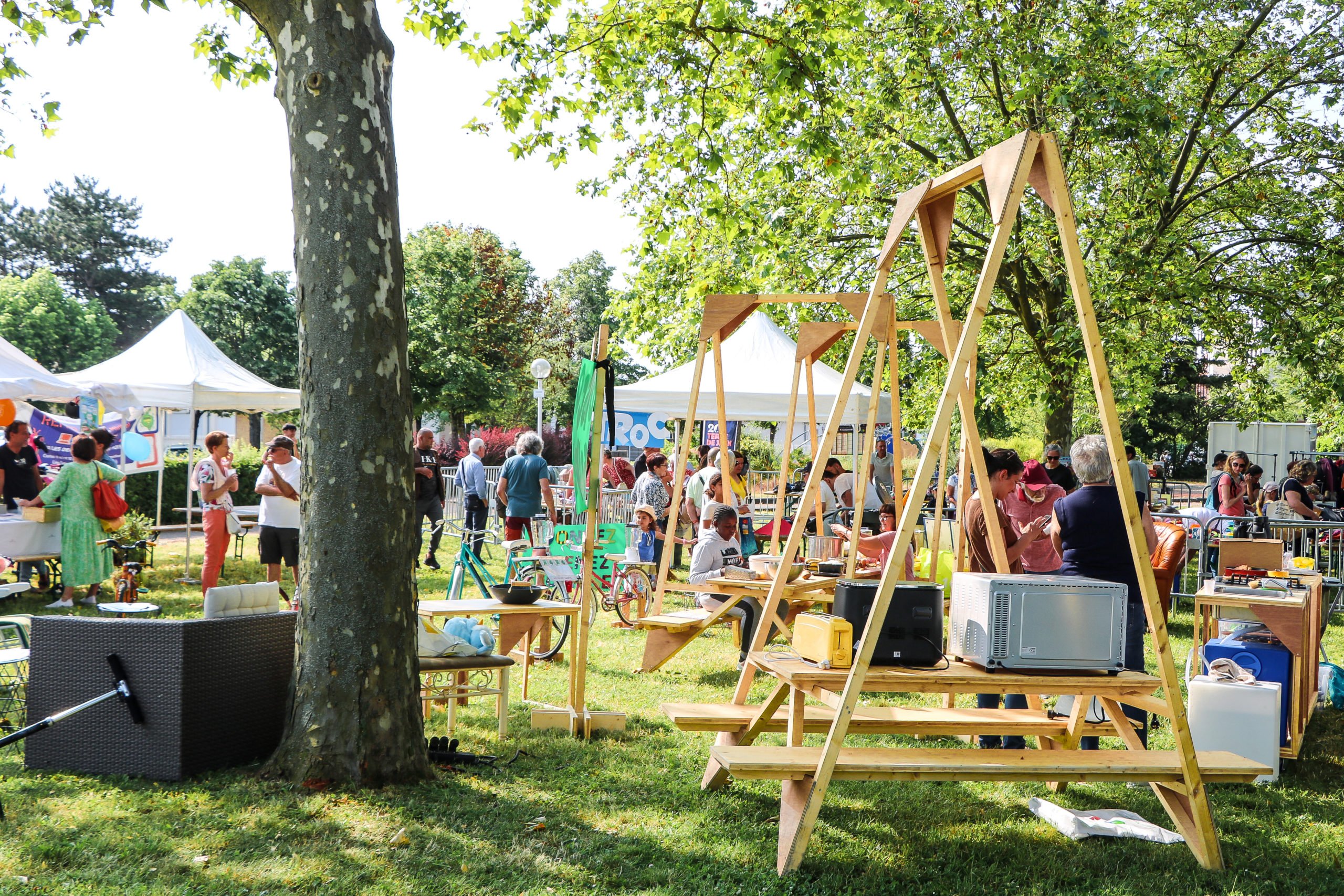 Sur place, un village des associations à permis aux habitants et aux bénévoles d’échanger autour de la réutilisation et de la réparation.